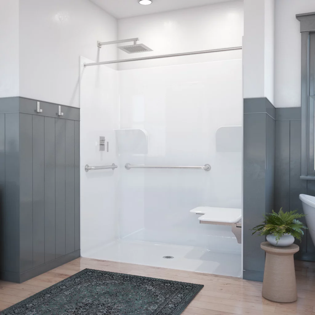 - Built-in shower benches or fold-down seats